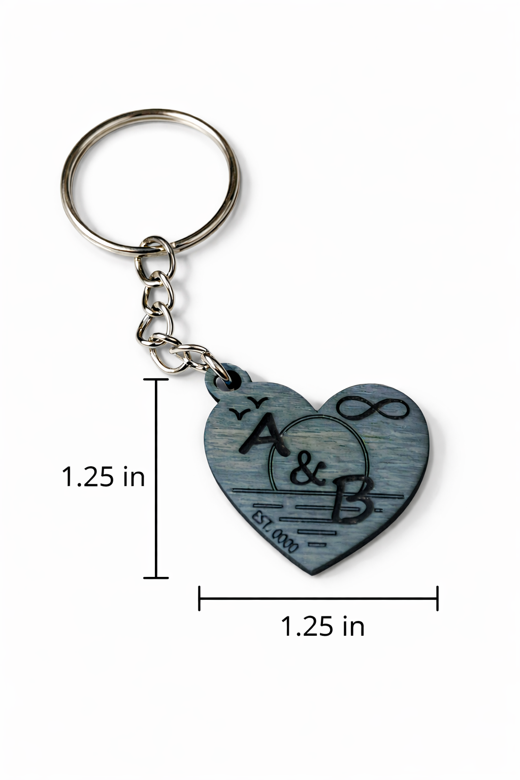 Each keychain is laser engraved with precision and can be fully customized with your choice of initials and a meaningful date or number, making it a perfect keepsake for couples, anniversaries, weddings, or Valentine’s Day.